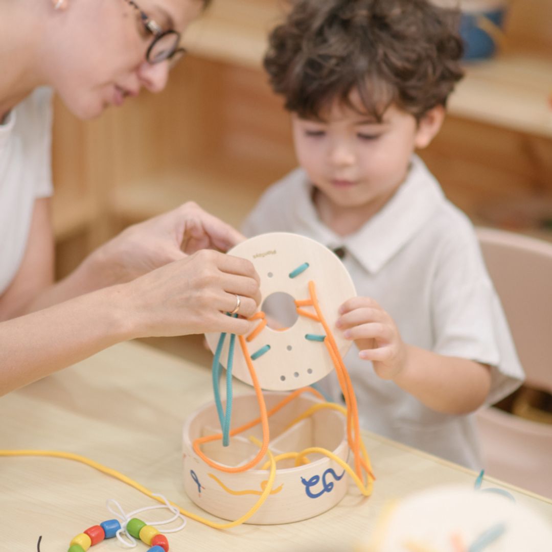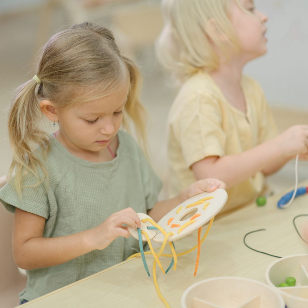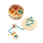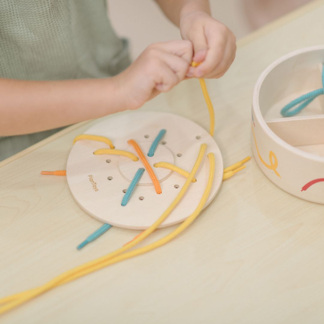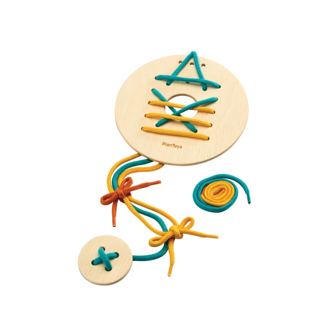 This tactile lacing set keeps little hands busy threading, looping, and concentrating—building fine motor control, coordination, and patience along the way. The open-ended format encourages kids to experiment with patterns and sequences at their own pace, making it as calming as it is skill-building. When playtime wraps up, everything tucks neatly back into the board itself, which doubles as its own storage solution. Minimal fuss, maximum focus.