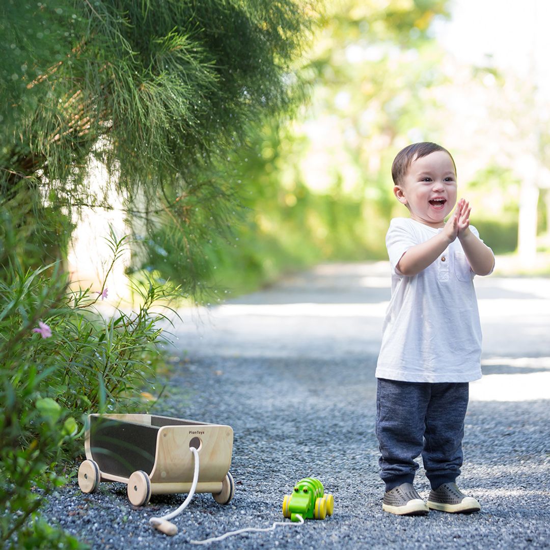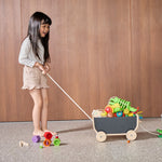 This sturdy pull wagon lets kids gather and transport their favorite things with purpose. The chalkboard-friendly black finish invites customization (names, drawings, temporary masterpieces), while the removable handle makes it easy to switch sides — or link multiple wagons into a very official train. Sustainably made and endlessly useful, indoors or out.