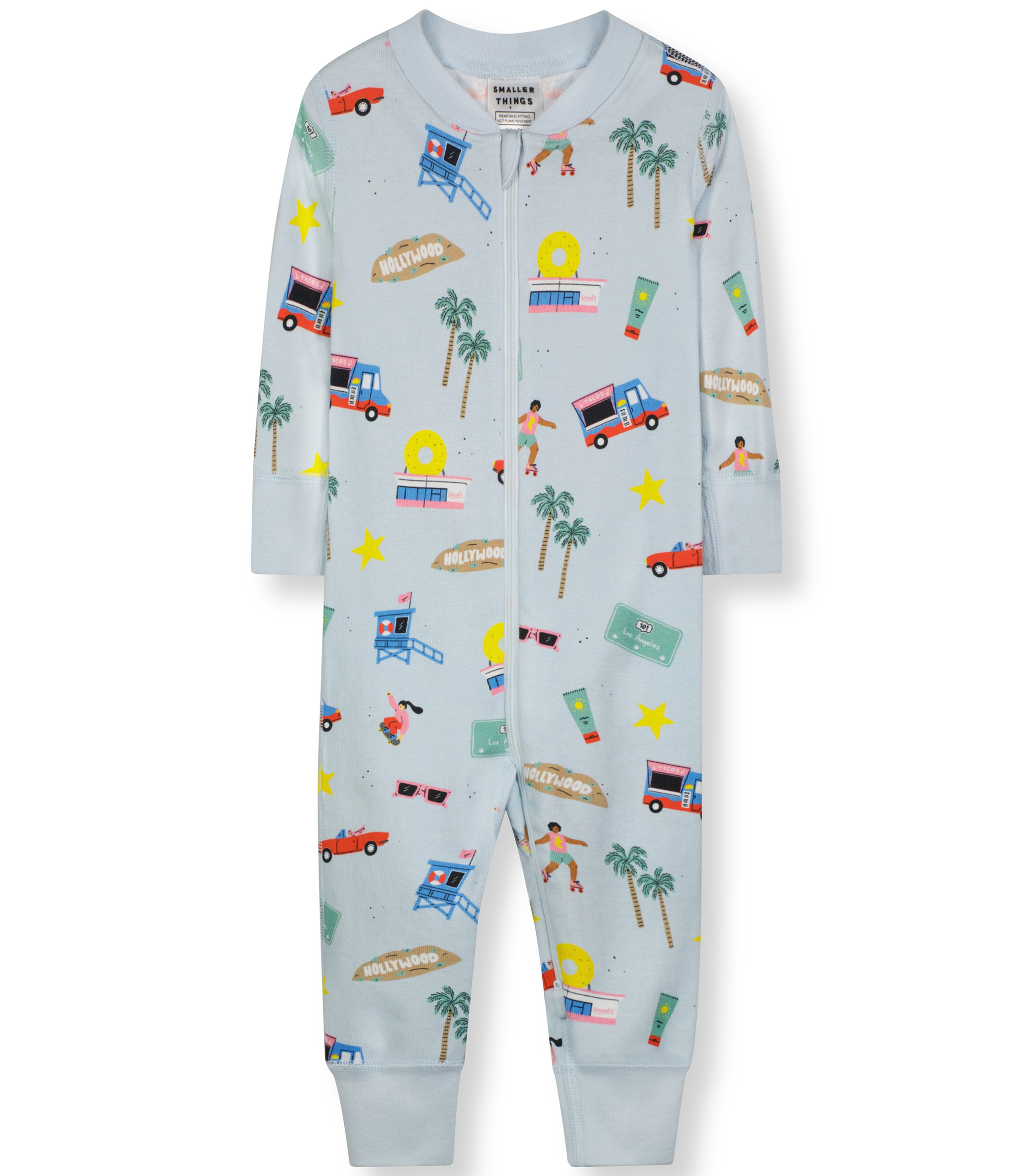 For dreamers of the west coast variety. Soft ribbed cotton and a two-way zipper keep things cool, comfy, and late-night change-friendly — because even in L.A., efficiency never goes out of style.